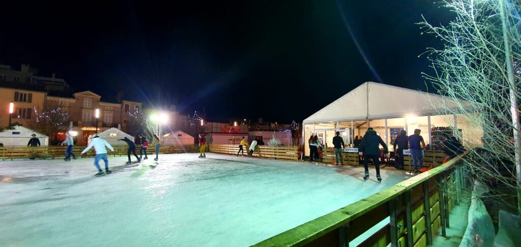 Pour les fêtes de fin d’année, nous avons installé 600m2 (20X30m) de plancher bois sur ossature métallique afin d’accueillir la patinoire au cœur du centre de Cahors. De plus, nous avons installé un chapiteau de 100m2 (10mX10m) avec son plancher ainsi que du bardage vitré. Enfin nous avons également installé du matériel mobilier (Comptoirs d’accueil, chauffages…)