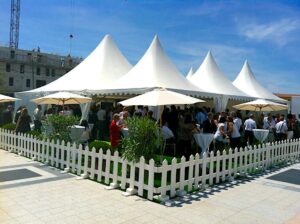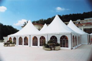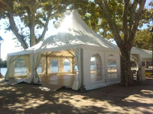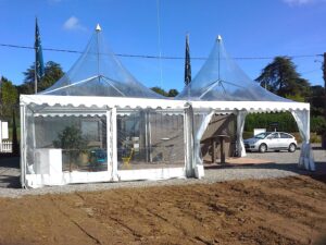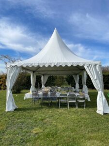 Les cottages garden plus communément appelées tentes pointus, toits pointus, pagodes ou encore chapeaux chinois sont une excellente alternative pour accompagner vos évènements. Ces structures élégantes s’intègrent parfaitement dans tous les paysages et ajoutent une plus-value certaine aux évènements qu’elle accompagne.