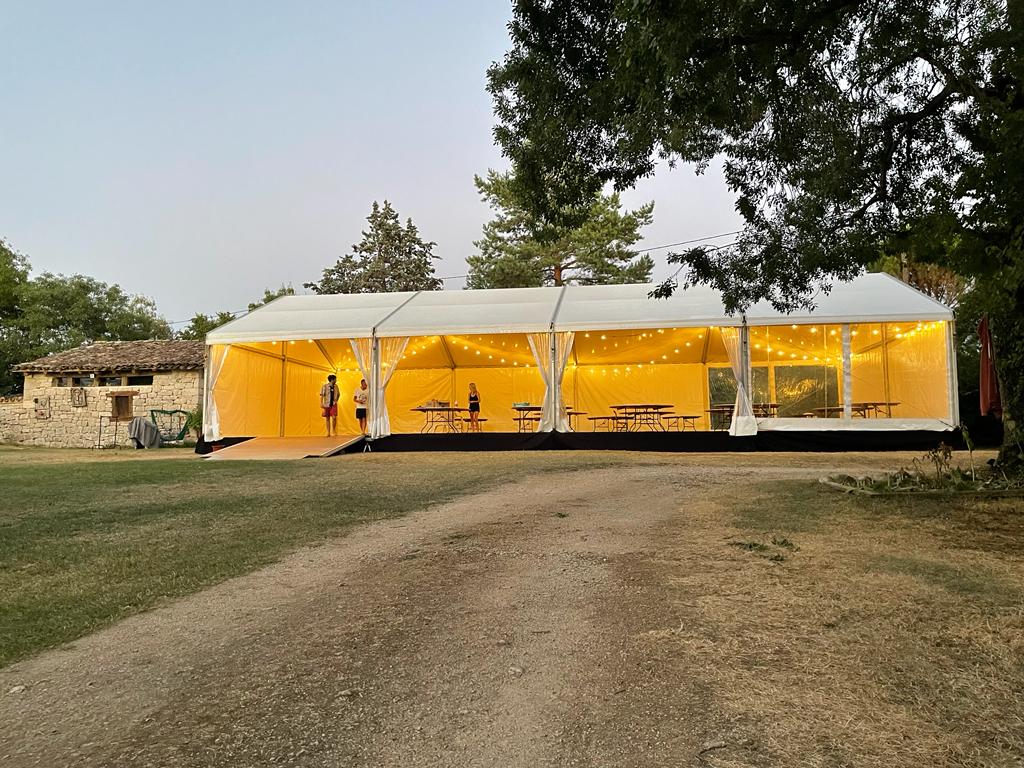 En effet, nous proposons des tentes sur mesure que ce soit en termes de surface d’accueil ou bien de matériel qui la compose (rideaux, bâches, plancher, moquette, toits, bardage…).