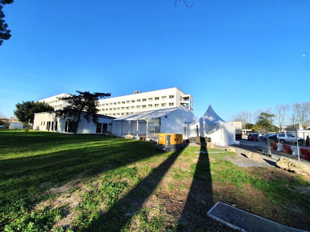 Pour l’inauguration d’un bâtiment, nous avons installé un chapiteau 10x15m soit 150m2 cristal avec son plancher bois.