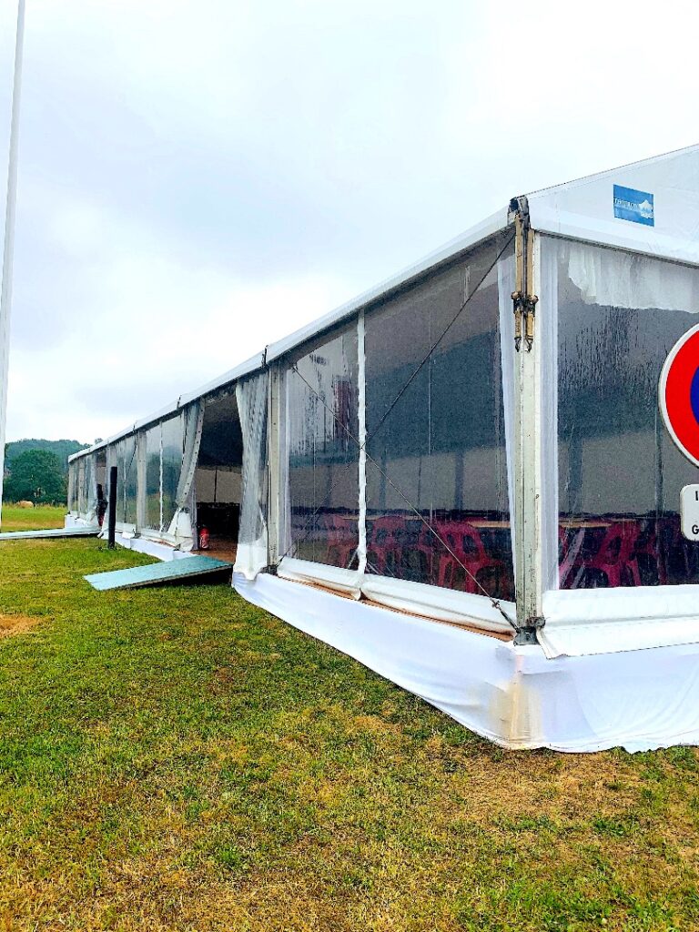 Installation un chapiteau cristal de 350m2 avec plancher à Castres pour l’université été de la e-santé.