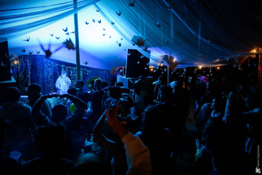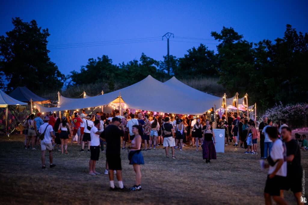 À l’occasion d’un grand festival organisé dans le Lot, notre équipe a eu le plaisir de déployer une tente stretch de 150 m² (10 × 15 m) au sein d’un vaste parc naturel. Parfaitement intégrée dans le paysage, cette structure événementielle a accueilli plusieurs centaines de convives dans une atmosphère à la fois conviviale, festive et chaleureuse.